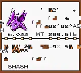 ' B' ゥ is a Poison-type glitch Pokémon in Pokémon Yellow. It occupies hexadecimal slot F1 and will become 94 when traded to Pokémon Red and Blue. It is only obtainable via the Time Capsule exploit with Wobbuffet. Its Pokédex number is 033, making it a hybrid of Nidorino.