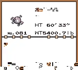 When its Pokédex entry is viewed, its cry is a long, never-ending glitch song, which can lock up the game. Viewing its moves can have the same effect. The only way to bypass this is to have a Magnemite registered as "owned" in the Pokédex.