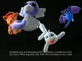 In 1998, a set of KFC promotional Pokémon toys were sold at KFC stores in the United States. They were beanbags of Vulpix, Dratini, Seel, and Zubat people could purchase with any meal at KFC for $4.99USD[1] between November 9 and December 20, 1998.[2] Unlike other toys offered in 1998, these were not bundled with Kids Meals.