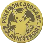 The 25th Anniversary Golden Box is a premium product which includes an all-Holofoil 60-card deck focusing on Pikachu and a plethora of gold-colored TCG accessories. Most of the cards are reprints from the Sword & Shield Era but have their own collection symbol and number, as well as a "25th" graphic. Of note are two entirely gold Full Art cards featuring Pikachu and a Poké Ball, which feature etching and a much larger 25th anniversary graphic. All standard cards are Mirror Holofoil. Each Japanese or Korean box also comes packaged with five copies of the Promo Card Pack 25th Anniversary Edition, which are replaced with a single pack of 25th Anniversary Collection in Traditional Chinese boxes due to the promo card set not distributed through promo packs.