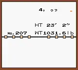 4, ゥァ is a Ghost/Normal Glitch Pokémon found only in Pokémon Yellow. It can only be obtained via the Time Capsule exploit with Bellossom. It becomes a 7PkMn 'v when traded to Red and Blue. Its Pokédex number is 207, and its hex is DD.