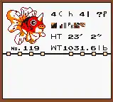 It can only be obtained by the Time Capsule exploit with Yanma. It is a hybrid of the Pokémon Seaking.