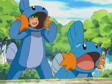- When Nicholai walks away after defeating May, his Mudkip is on his right shoulder but when Team Rocket is watching him through their binoculars, the Mudkip is on his left shoulder.