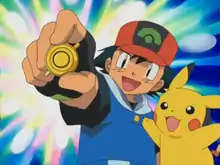 • When Ash gets Pikachu back from the cage, the inner green circle on his hat is smaller than usual.