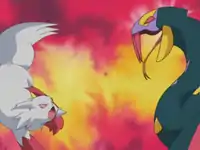 - At the beginning of the battle between Nicholai and Jessie, the lower left fang on Nicholai's Zangoose suit briefly disappears.