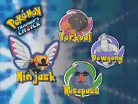 - In the Pokémon Trainer's Choice segment, all three choices are somewhat correct. Dewgong's Ice-type is effective against Ninjask's Flying-type, Torkoal's Fire-type is effective against Ninjask's Bug-type, and Nosepass' Rock type is actually effective against both of Ninjask's Bug/Flying types, which would make Nosepass the most effective choice.