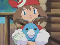 May wants to stay there until Swablu gets better, so Brock helps her with caring for the little Flying-type. Eventually its wing heals, but it still can't fly. The ranger explains that the accident with the tree was very traumatic, so the kids try to re-teach Swablu to fly. Eventually Max comes up with a successful idea to trick Swablu into flying using "magic powder" spread by Beautifly.
