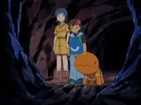 Not long after, Elisa, a local ranger, comes in her car and tells the crew that they are trespassing in a dangerous area. While Max restrains Brock, May explains that they didn't know the area was restricted. Shortly after commenting that the region doesn't look dangerous, Ash loses his footing and falls in a crater. Elisa saves him by throwing a rope. She explains to the group that there is an underground tunnel network known as the Trapinch underground labyrinth linking all of the craters, and that they should do everything possible to avoid falling in.