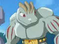 Team Rocket starts to float away in their Meowth balloon. Just as it seems that they are going to get away, Machoke and Machamp come running from the distance and effectively stop the trio's getaway. Jessie and James call upon Seviper and Cacnea respectively. Ash and his friends arrive at the scene as Machop begins to rescue Psyduck and Phanpy from the balloon. Machoke and Machamp dash towards Jessie and James and use Cross Chop to send them flying into their balloon, causing the engine to explode and blast Team Rocket off into the sky. Phanpy and Psyduck are freed from the net.