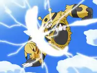 Team Rocket finish pulling in Electivire but then a voice comes from atop the ridge and tells them to let go of the Pokémon they have got in the net and the person jumps down from atop the ridge and reveals himself. Much to Team Rocket's shock, the owner of the voice happens to be Gary! Gary orders Electivire to use Iron Tail, which it does and breaks free from the net. Team Rocket are furious and jump to try and grab Electivire but Gary orders a Thunder Punch which scores a direct hit and knocks Team Rocket away. Once Team Rocket are gone Ash tries to use his Pokédex to get some information on Electivire but there is no data available.