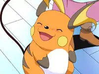 Some time later, Sugar returned to help out against Team Rocket. It turned out Abigail hadn't driven Sugar away but he had run off in order to become stronger, so he could toast the berries better. Due to his hard work and his exposure to a Thunder Stone, Sugar evolved into a Raichu and had learned Focus Punch. After using his attacks to drive Team Rocket away, Sugar resumed his place at Abigail's side and continued to bake delicious cakes. Sugar's known moves are Thunderbolt and Focus Punch. | ||
