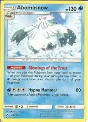 Abomasnow (Japanese: ユキノオー Yukinooh) is a Water-type Stage 1 Pokémon card. It was first released as part of the Ultra Prism expansion.