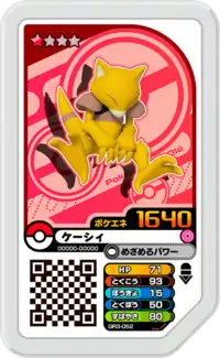 Abra (Japanese: ケーシィ Casey) is a Grade 1 Pokémon Ga-Olé disk. It is part of the third Grand Rush set.