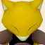 Abra is a bipedal Pokémon that is primarily yellow. Its face is kite-shaped with a small, pale yellow snout and two short, pointed ears with pale yellow interiors. Its wide eyes are normally closed. Abra's body is segmented with black skin is visible between its joints and along its neck. It has two brown, pauldron-shaped extensions on its shoulders, as well as a brown, fauld-like piece around its chest. It has three digits on each hand and foot, but its fingers considerably shorter than its toes. Two of its toes face forward and one faces backward. Its tail is thick and long, with a brown band located near the tip.