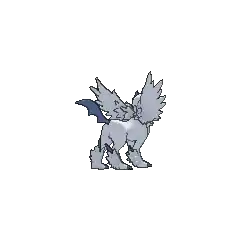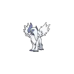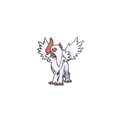Mega Absol emits a fearsome aura that has been known to kill fainthearted people from shock. It directs this aura at its opponents by beating its "wings", which are not capable of flight. However, Absol apparently detests assuming this form, as it normally dislikes fighting in the first place.