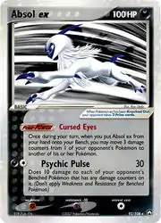 Absol ex (Japanese: アブソルex Absol ex) is a Darkness-type Basic Pokémon-ex card. It is part of the EX Power Keepers expansion.
