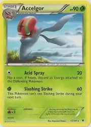 Acid Spray is a move in the Pokémon games that Accelgor can learn. This card's Pokédex entry comes from Pokémon White.