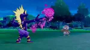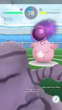 Alolan Muk spits up a large drop of purple acid at the opponent. | ||