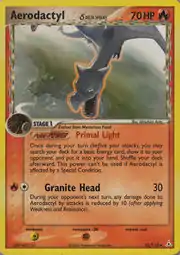 Aerodactyl δ (Japanese: プテラ δ Ptera δ) is a Fire-type Stage 1 Pokémon card. It is part of the EX Holon Phantoms expansion.