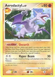Hyper Beam is a move in the Pokémon games that Aerodactyl can learn. This card's Pokédex entry comes from Pokémon Diamond, Pearl, and Platinum.