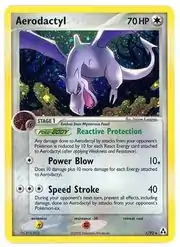 Aerodactyl (Japanese: プテラ Ptera) is a Colorless-type Stage 1 Pokémon card. It is part of the EX Legend Maker expansion.