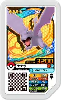 Aerodactyl (Japanese: プテラ Ptera) is a Grade 3 Pokémon Ga-Olé disk. It is part of the fourth Grand Rush set.