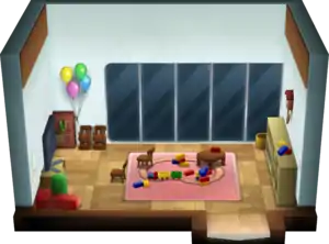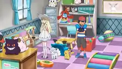 The Aether Paradise House debuted in Mission: Total Recall! when Nebby teleported Ash and Lillie to the room which Lillie and Gladion had owned when they were younger. The room was shown to be filled with various dolls and toys.