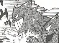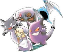 Haunter and Gengar were first seen spying on Red. They are hidden after Agatha transforms from a Golbat to her human self. Both reappear after Agatha changed back into a Golbat. None of Haunter's and Gengar's moves are known. | ||