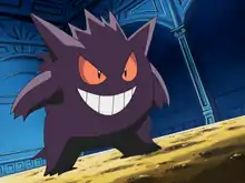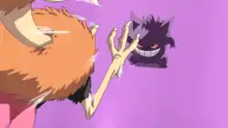 Gengar is the Pokémon that Agatha sent out while battling Satoshi. It went up against Satoshi's Alakazam and lost. | ||