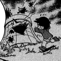 She was first seen trying to take away Super Nerd Miles after he was defeated by Yellow and the Good Gym Leaders of Kanto. She was then seen in a flashback during the events of the previous chapter where she battled Blue and attempted to kill him by having her Gengar use Dream Eater to suck away his energy. While encased in the Dream Eater's coffin, she told him of her vendetta against Professor Oak and anyone associated with him, which included Blue. He managed to escape with help from his Golduck, and a Haunter she stole from Camper Evan was also taken back. She then had her Haunter lead an army of Gastly to attack Cerulean City to delay Misty.
