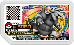 Aggron (Japanese: ボスゴドラ Bossgodora) is a Grade 4 Pokémon Ga-Olé disk. It is part of the fourth Dash set.