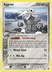 Aggron (Japanese: ボスゴドラ Bossgodora) is a Metal-type Stage 2 Pokémon card. It is part of the EX Power Keepers expansion.