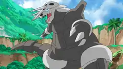 In The Prism Between Light and Darkness!, Gozu owns an Aggron that can Mega Evolve. He sent it out to battle Professor Kukui and Faba, where it attacked Hypno, Braviary, and Alakazam. In Securing the Future!, Aggron was defeated by Kukui's Incineroar.