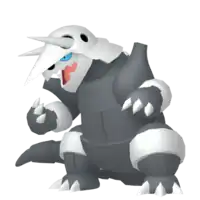 Aggron (Japanese: ボスゴドラ Bossgodora) is a dual-type Steel/Rock Pokémon introduced in Generation III.