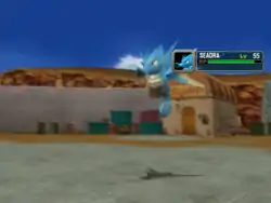 An orb of energy appears in front of Dragonair's horn, and it calls upon a strong gust of wind. It then rides and controls the wind to speed itself up. It also can spin around the opponent to trap them in a tornado. | ||