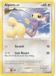 Scratch and Last Resort are both moves in the Pokémon games that Aipom can learn. This card's Pokédex entry comes from Pokémon Diamond.