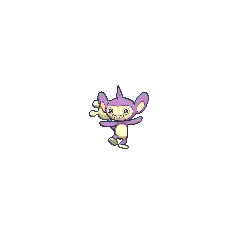 Aipom uses its powerful tail freely and cleverly for many purposes. The tail is strong enough to anchor Aipom to a branch and suspend the rest of its body in the air, but also delicate enough to pick fruit and manipulate objects. Aipom has been known to wrap its tail around tree branches as it sleeps so it does not fall. Since Aipom uses its tail so much, its actual arms are not as dexterous and become clumsy over time. Aipom lives high in the treetops of tropical, temperate, and even boreal forests, using its tail for balance as it swings from branch to branch. In Alola, Bounsweet is its favorite food.