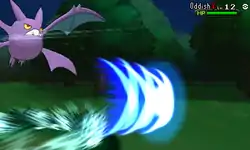 Golbat's wings glow light blue and it flaps them, releasing multiple light blue glowing saw disc-like energy blades from its wings at the opponent. | ||