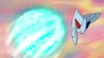 | Sky Forme Shaymin flies around in a circle until wind starts forming in the middle of the circle. Then, the wind starts glowing light blue, and forms into a light blue energy ball. Finally, Sky Forme Shaymin flies back and flies into the energy ball, sending a light blue blast from the ball at the opponent. | |||
