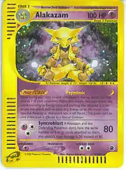 Alakazam (Japanese: フーディン Foodin) is a Psychic-type Stage 2 Pokémon card. It is part of the Expedition Base Set.