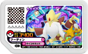 Alakazam (Japanese: フーディン Foodin) is a Grade 4 Pokémon Ga-Olé disk. It is part of the third Grand Rush set.