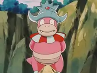 The group watched as Arthur jumped across several rocks in an attempt to reach the King's Rock. As the Shellder tried to attack him, Arthur dodged them, but also slipped into the water. Using his tail as a propeller, Arthur was able to climb out of the water. As he reached the King's Rock, several Shellder jumped and tried to bite him, but Larvitar used Screech and scared them off. Arthur was able to grab the King's Rock, and a Shellder clamped down on it, allowing him to evolve into Slowking. After battling Team Rocket, Arthur led the Slowpoke and Slowbro through a waterfall into the Slowpoke Paradise. Alice realized she needed to release Arthur so he could stay with the colony. Although she was sad, she knew it was the right thing to do. He reappeared in Address Unown! where he was part of an Unown's dimension. His nickname may have been based on King Arthur, because Ash, Misty, Brock, and Alice called him "king" after Arthur evolved into Slowking. Arthur's only known move is Confusion. | ||