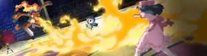- During her Infernape's battle against Brock's Croagunk, she seems to be moving in sync with it while they were battling close up.