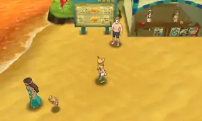 Hau'oli City | 97USUM | Beachfront: A popular spot where locals like to gather. Even people from other towns come to Hau'oli City to visit this beach. Shopping District: The bustling center of the city, where you can get everything from fashion items to popular treats to eat.SM The center of the city, where more and more people have become fashion conscious to take commemorative photos.USUM Marina: A harbor where you can set out for the other islands. It's visited by many people and boats. |