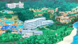 Aether Paradise, just west of the center of the archipelago, starkly contrasts with the natural islands. It is strikingly modern, with a huge building in the center that serves as both the main area and the headquarters of its owners, the Aether Foundation. Behind this building is a sprawling mansion that serves as the office and residence of its head, Lusamine.