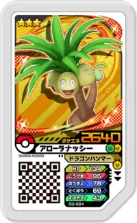 Alolan Exeggutor (Japanese: アローラナッシー Alolan Nassy) is a Grade 3 Pokémon Ga-Olé disk. It is part of the third Dash set.