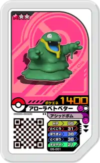 Alolan Grimer (Japanese: アローラベトベター Alolan Betbeter) is a Grade 1 Pokémon Ga-Olé disk. It is part of the fifth Dash set.