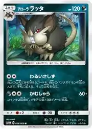Alolan Raticate (Japanese: アローララッタ Alolan Ratta) is a Darkness-type Stage 1 Pokémon card. It was first released as part of the Sun & Moon expansion.