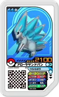 Alolan Sandslash (Japanese: アローラサンドパン Alolan Sandpan) is a Grade 2 Pokémon Ga-Olé disk. It is part of the fifth Dash set.