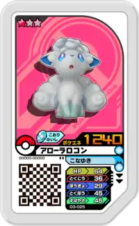 Alolan Vulpix (Japanese: アローラロコン Alolan Rokon) is a Grade 1 Pokémon Ga-Olé disk. It is part of the third Dash set.